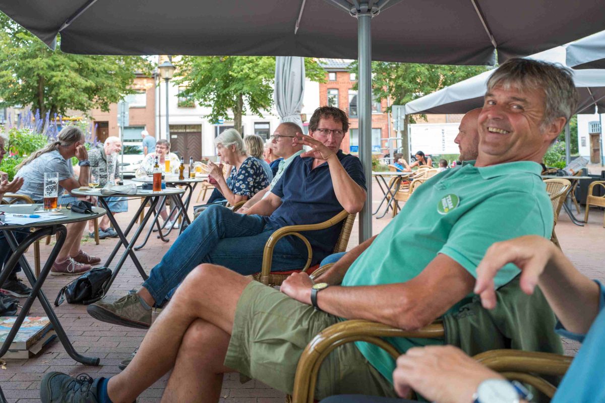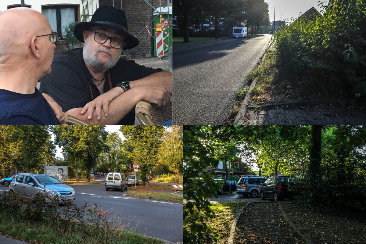 Werner Lüders Thema ist die Schulwegsicherung in seinem Ortsteil Amern. Hier im Bild seht ihr ihn mit ernster Miene im Gespräch mit Thomas Nieberding. Er hat zu diesem Thema schon Hilfe zur Selbsthilfe geleistet und auf Facebook ein Fotoalbum dazu erstellt und geteilt und die Schwalmtaler Politiker zur Stellungnahme und vor allem zum Handeln aufgefordert. Wie er so schön sagte: „Diese Situation hier einmal während der Wahlkampfzeit publik zu machen, war mir einfach ein Bedürfnis. Auch wir Bürger dürfen Wahlkampf betreiben oder?“ Ja, das dürfen Bürger*innen tun. Unbedingt. Wir Grünen können hier für den Moment wieder nur mit unserem geplanten Mobilitätskonzept antworten und versichern, dass wir uns um die Schulwegsicherung kümmern werden, wenn man uns lässt.