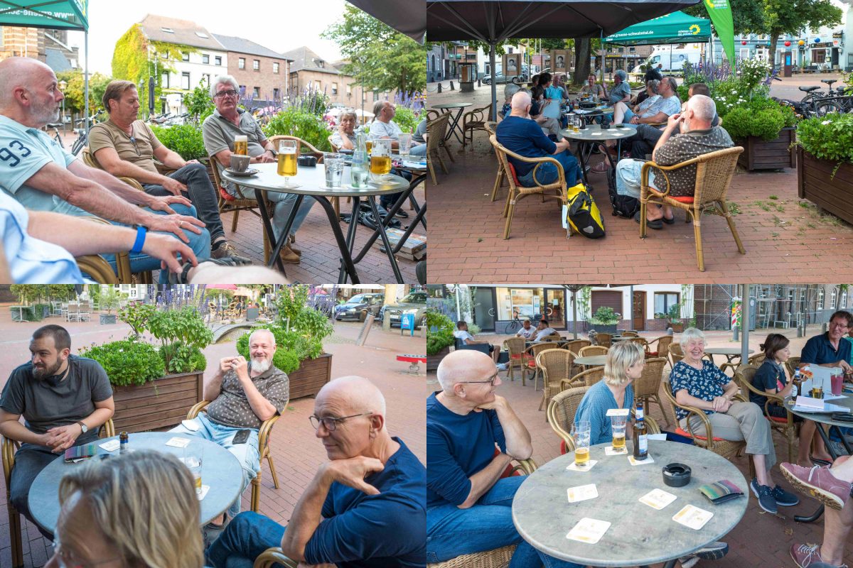 Nach der Fraktionssitzung gingen wir dann zum gemütlichen, lockeren Teil über und die ersten Fragen wurden gestellt. Hier spricht unser Bürgermeisterkandidat Paul mit Andreas Pook aus der Rösler-Siedlung (leider nur im Hintergrund sichtbar).