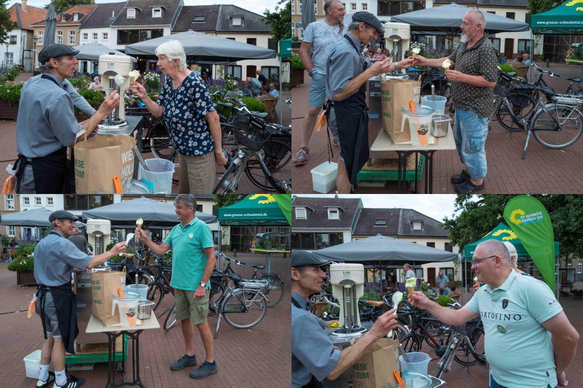 Nach und nach holten sich GRÜNE und Gäste ihre Portion von Pinos grünem Spezialeis.